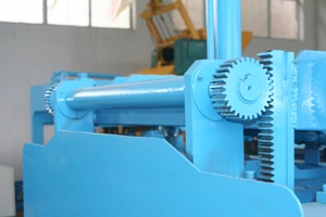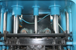 Sistemul de deformare sincron care este antrenat de roți dințate și lanțuri face ca cei doi cilindri de deformare să funcționeze sincron și face ca matrițele să se miște