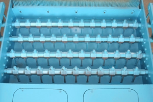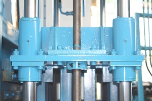 Pe matrița superioară sunt cilindri de copac. Cea din mijloc asigură viteza de ridicare, iar celelalte două pe ambele părți asigură presiunea matriței superioare.